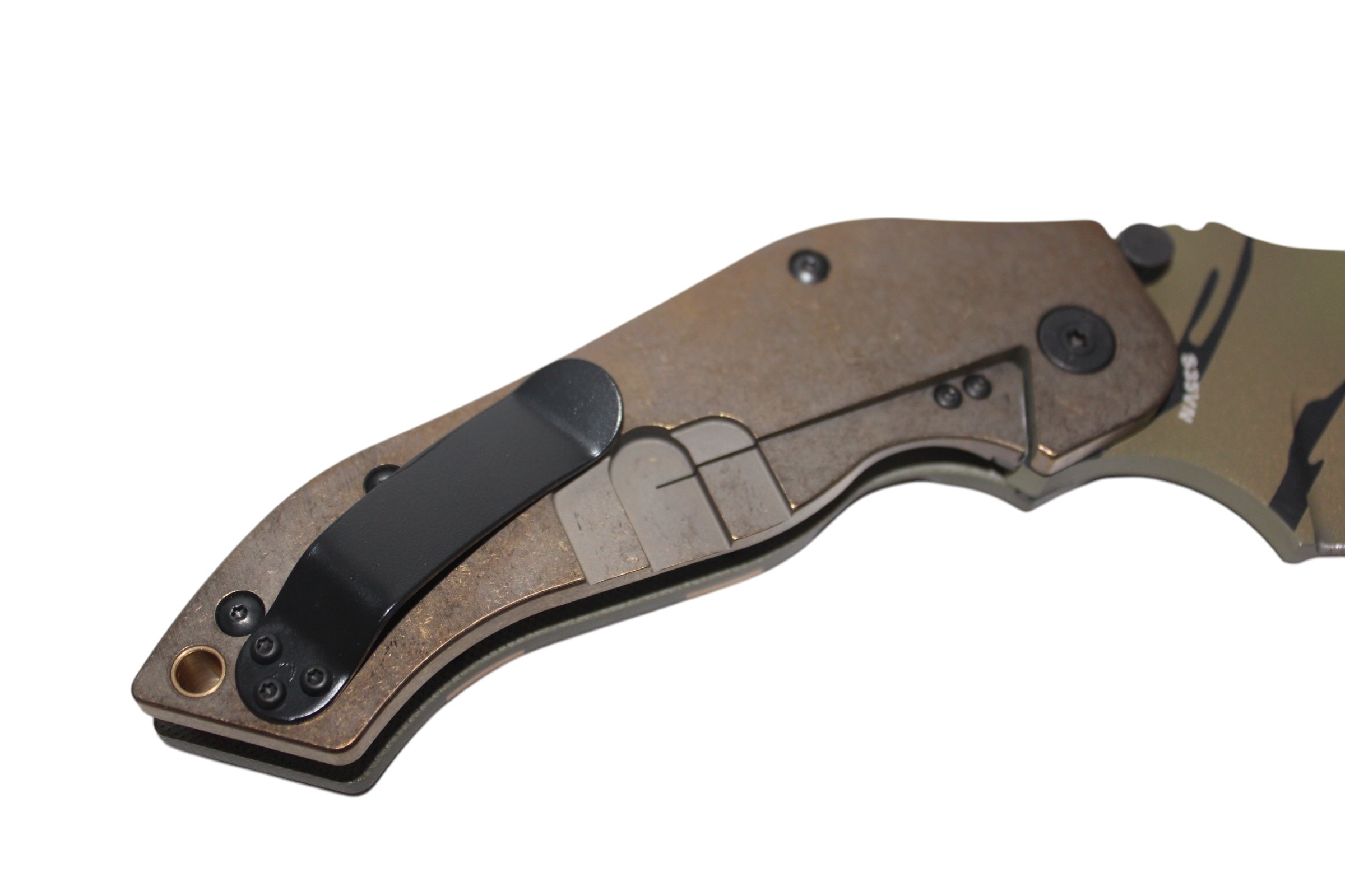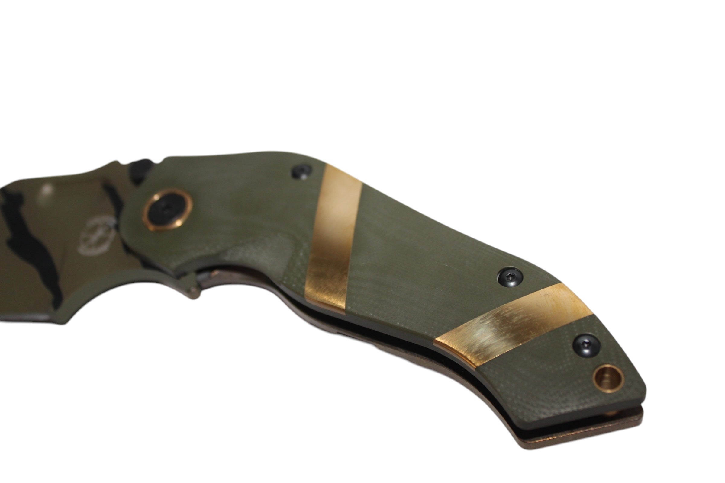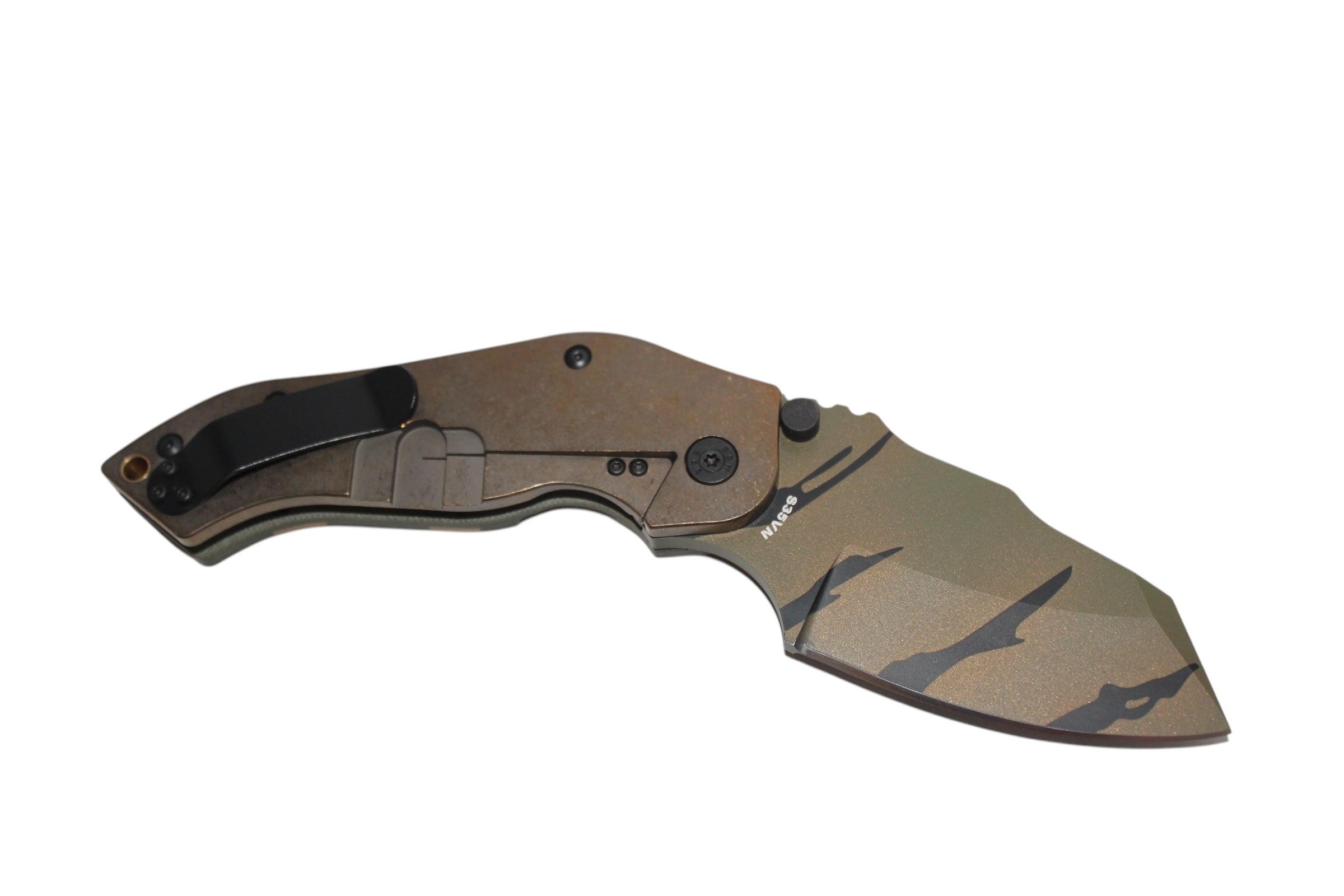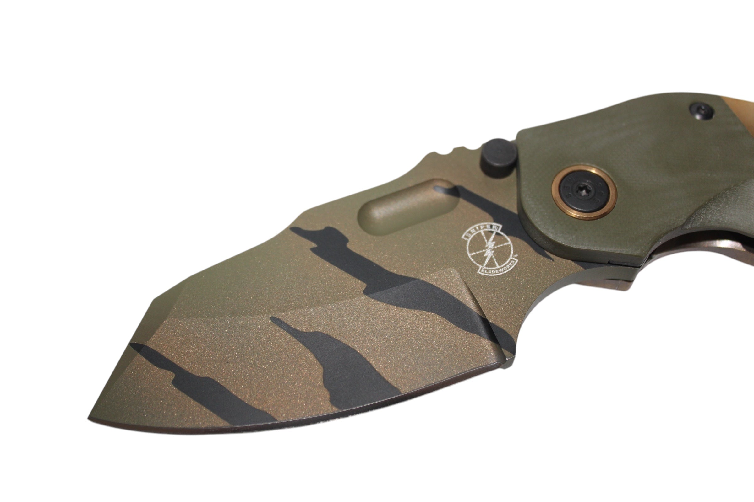 Our Camo DMFs are made in very limited quantities featuring a cerakoted blade with a unique camo pattern on each one. Please double check you have selected the correct desired version prior to placing your order. All photos are in order of the versions listed.